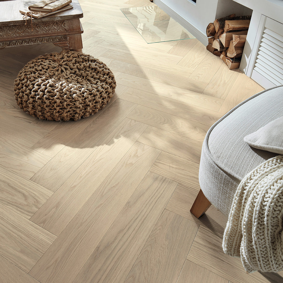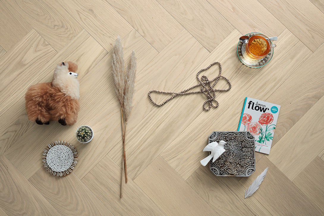 Fiskebensparkett Pearl Lys Eik Lakkert - Ren sortering 13x100x500mm